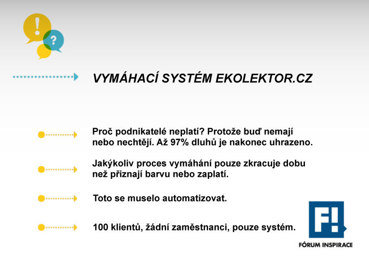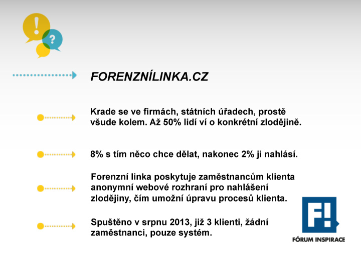 In 2011 we decided to create the successful enforcement system eKolektor, which is based on the principle of "avoid disputes, simply settle." In 2013, we decided to enrol risk management area with pilot project of Ethic Line – "whistleblowing" tool of prevention and detection of unfair and illegal conduct, which protect at work and in business those honest against those unfair. In 2018 we launched proffesional GDPR Helpdesk GDPR Plus , which thanks to integrated AI Confluence speeds up search for answers to our clients.