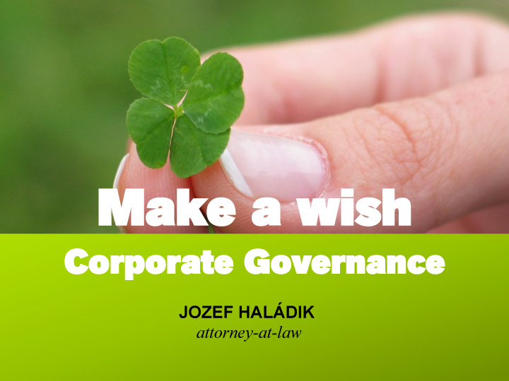 If you would like to buy or sell a company with me, clarify contractual documentation or set up an organizational structure or rules of "corporate governance," let me know at +420 603 466 473 or jhaladik@haladik.com.